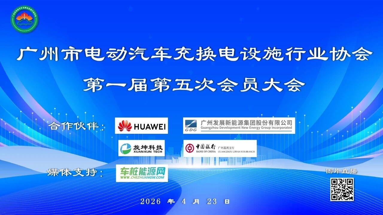 2026年4月23日,广州市电动汽车充换电设施行业协会第一届第五次会员大会暨2026年会在广州顺利召开。广州市工业和信息化局、天河区科技工业和信息化局、荔湾区科技工业和信息化局等相关领导出席会议,协会会长、副会长及全体会员单位代表参加本次大会。